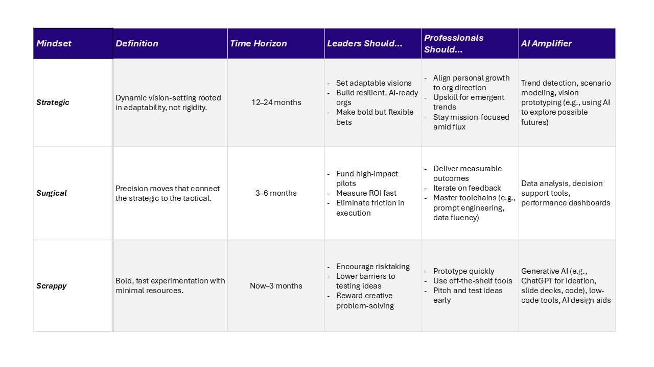🧭 Strategic. Surgical. Scrappy. Which of these do you find yourself leaning on most these days—and which one still feels out of reach? Drop a comment—I’m curious how this mindset is showing up (or not) in your world.